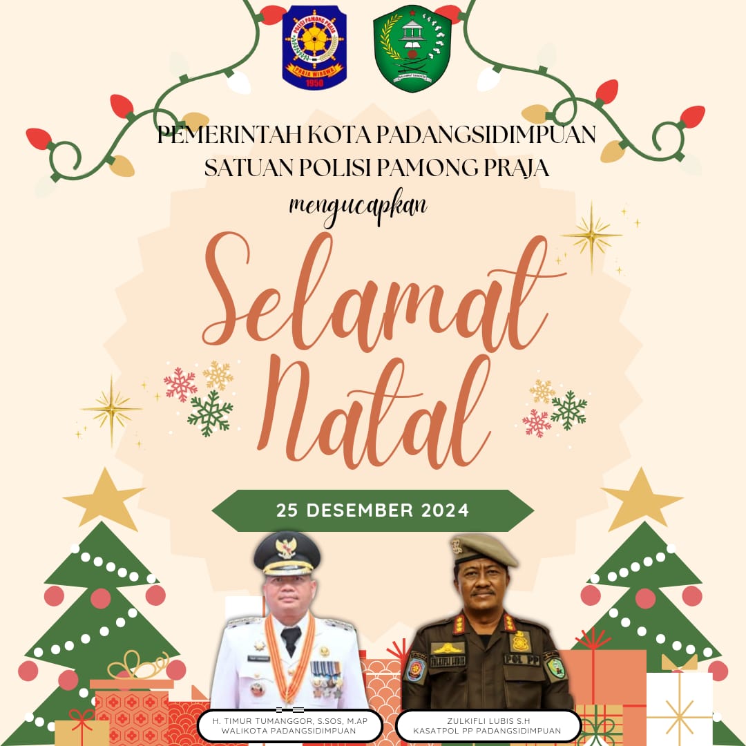 Dalam ucapan Selamat Natal 2024 dan Tahun Baru 2025 dari PJ Walikota dan Kasat Pol PP kota Padangsidimpuan terhadap Masyarakat yang merayakan Nya,semoga Damai Natal membawa kedamaian antar sesama masyarakat,suku,ras dan agama di kota Padangsidimpuan,tutur PJ Walikota.