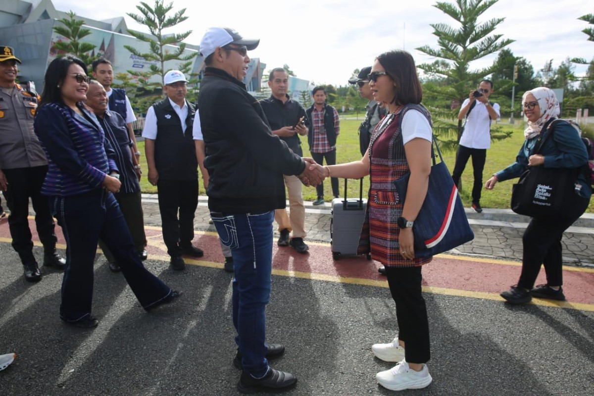 TAPUT, DK – Bupati Tapanuli Utara Dr. Jonius TP Hutabarat, S. Si., M. Si dan Ketua TP. PKK Taput Ny. Neny Angelina JTP Hutabarat Br Purba sambut kunjungan kerja Wakil Menteri Pariwisata RI (Wamenpar) Ni Luh Puspa di Bandara Silangit, Siborong-borong, (Minggu, 4 Mei 2025)
