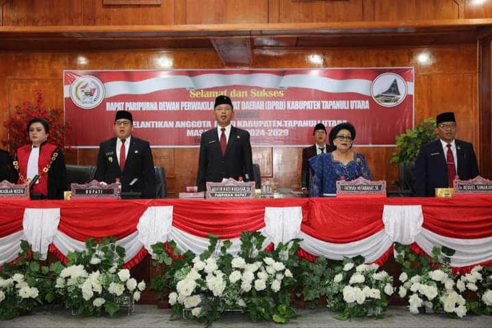 Taput || DK – Pejabat (Pj) Bupati Tapanuli Utara Dr. Dimposma Sihombing, S. Sos, M. AP menghadiri Rapat Paripurna DPRD Kabupaten Tapanuli Utara dalam rangka Pelantikan Anggota DPRD Kabupaten Tapanuli Utara Masa Jabatan 2024-2029 yang dilantik oleh Ketua Pengadilan Negeri Tarutung Marta Napitupulu, SH, MH, bertempat di Gedung DPRD Kabupaten Tapanuli Utara, Tarutung. (Senin, 30 September 2024).