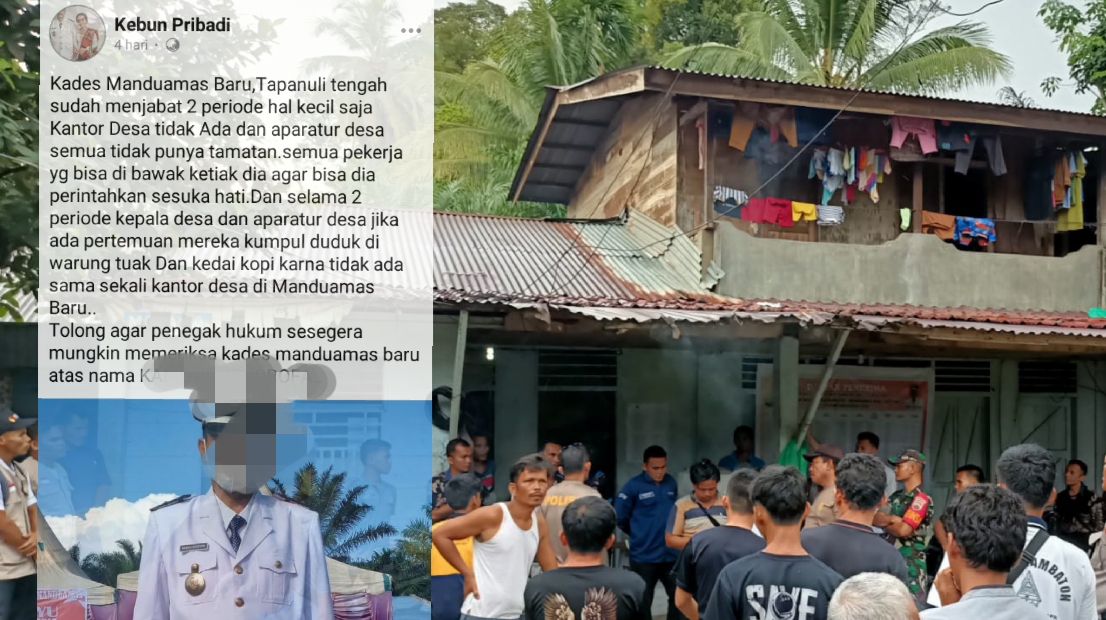 Postingan tersebut dilengkapi dengan keterangan yang menyoroti bermacam masalah kritis di desa, termasuk tidak adanya kantor desa dan kualifikasi pendidikan aparat. desa yang rendah. Hal ini membangkitkan kekhawatiran serius mengenai pengelolaan desa oleh Kepala Desa dengan inisial KM, yang telah memegang jabatan itu untuk dua periode.