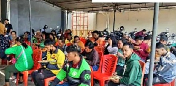 Aksi membuka dapur umum dan pemberian makanan secara cuma-cuma bagi masyayarakat umum dan khususnya para driver (pengemudi) ojek online (ojol) dan tukang/pengendara becak motor (bentor) dilaksanakan di pelataran Gereja Isa Almasih Jl. Gunung Salahutu No.13,