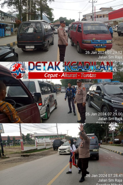BALIGE – Detakkeadilan.com Personil Polsek Balige Polres Toba selalu hadir ditengah-tengah masyarakat dengan memberikan pelayanan prima Kepolisian, salah satunya dengan melakukan pengamanan dan pengaturan arus lalu lintas, demi kelancaran dan kenyamanan pengguna jalan serta meminimalisir terjadinya kecelakaan berlalu lintas.
