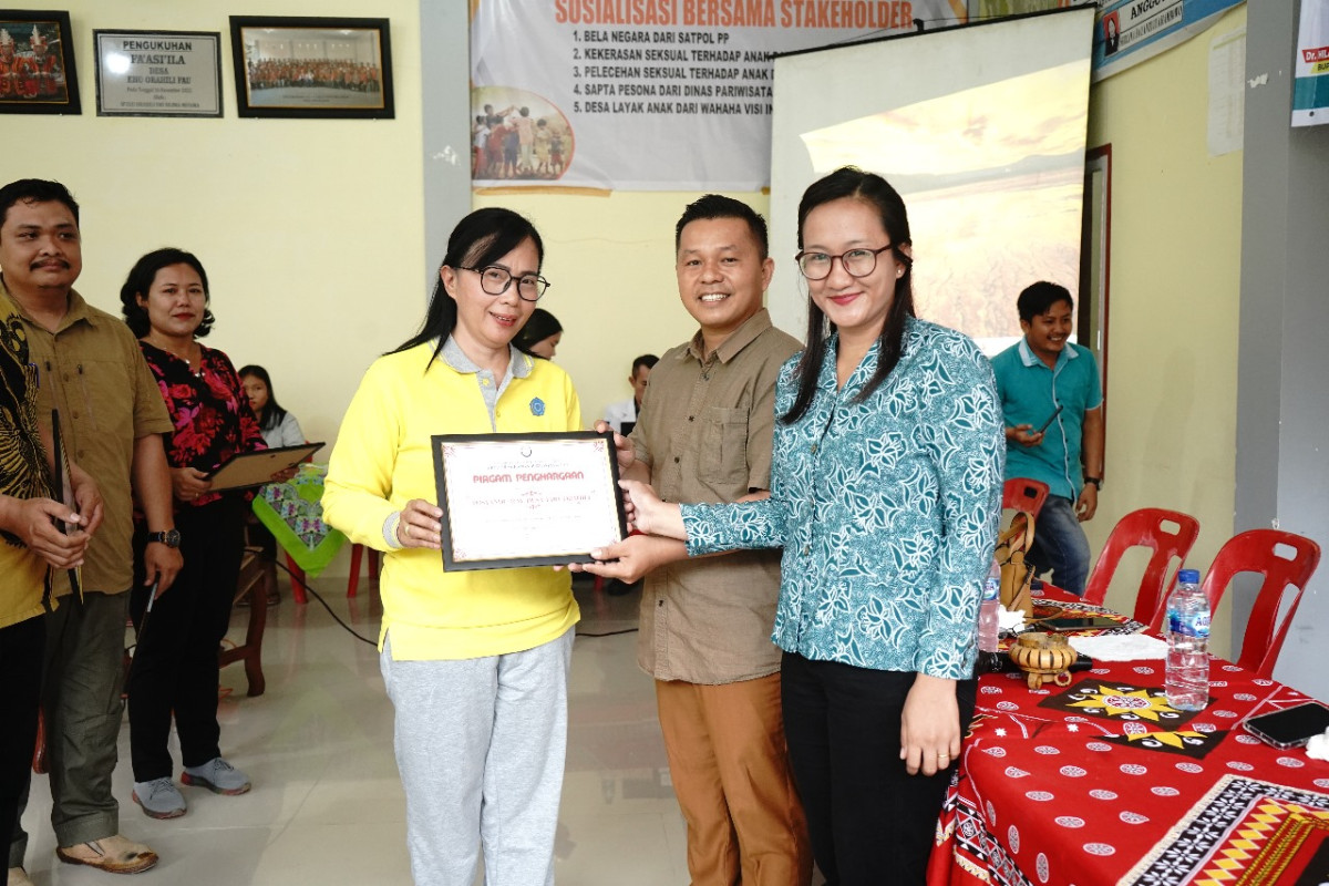 Dalam kata sambutannya Ny. Katarina Firman Giawa menyampaikan bahwa Desa Eho Orahili, sudah terpilih menjadi desa pendampingan penyuluhan kepada anak-anak, dimana sasaran kegiatan Posyandu remaja adalah remaja usia 10-18 tahun, mupengelola program remaja, keluarga dan masyarakat, serta kader kesehatan remaja. Pada kesempatan itu juga Ny. Katarina Firman Giawa menyerahkan Piagam Penghargaan kepada Kepala Desa Eho Orahili sebagai bentuk apresiasi atas kesungguhan dan pencapaian kinerja dalam program remaja, keluarga dan masyarakat.