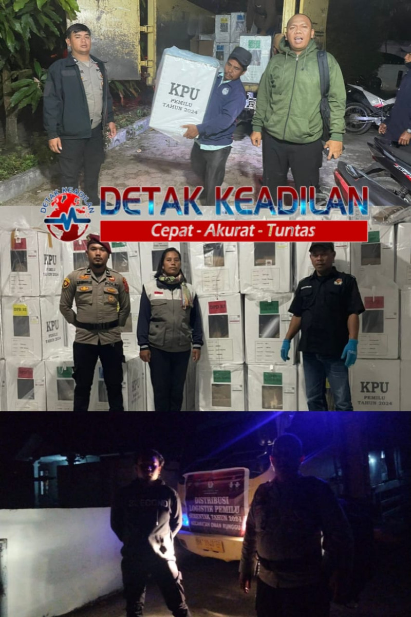 SAMOSIR – Detakkeadilan.com Pada malam 14 februari hingga dini hari ini 1t februari, Polres Samosir aktif melakukan pengamanan dan pengawalan pendistribusian logistik Pemilu 2024 dari Tempat Pemungutan Suara (TPS) ke Panitia Pemilihan Kecamatan (PPK) di Kabupaten Samosir. Kendati proses berjalan lancar, beberapa TPS membutuhkan pengamanan ekstra hingga pukul 05.30 WIB untuk menyelesaikan pendistribusian logistik.