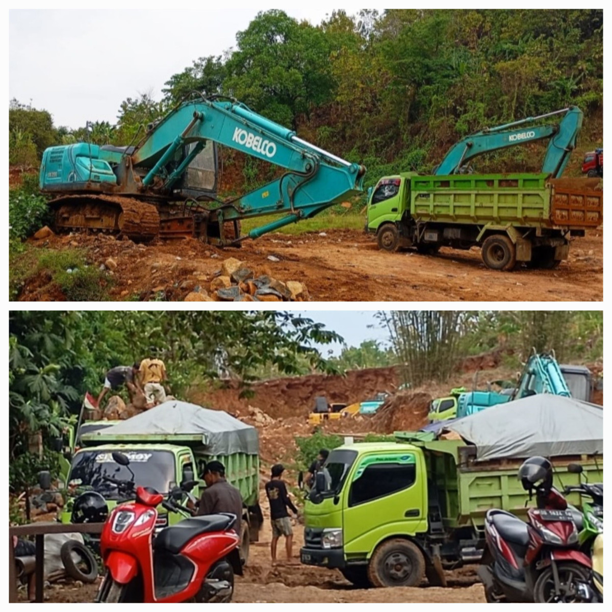 Di lokasi tambang, tumpukan tanah merah terlihat berserakan di bahu jalan. dan Truk-truk pengangkut material hilir mudik sejak pagi hingga petang, meninggalkan debu tebal dan ceceran tanah licin di sepanjang jalan poros.