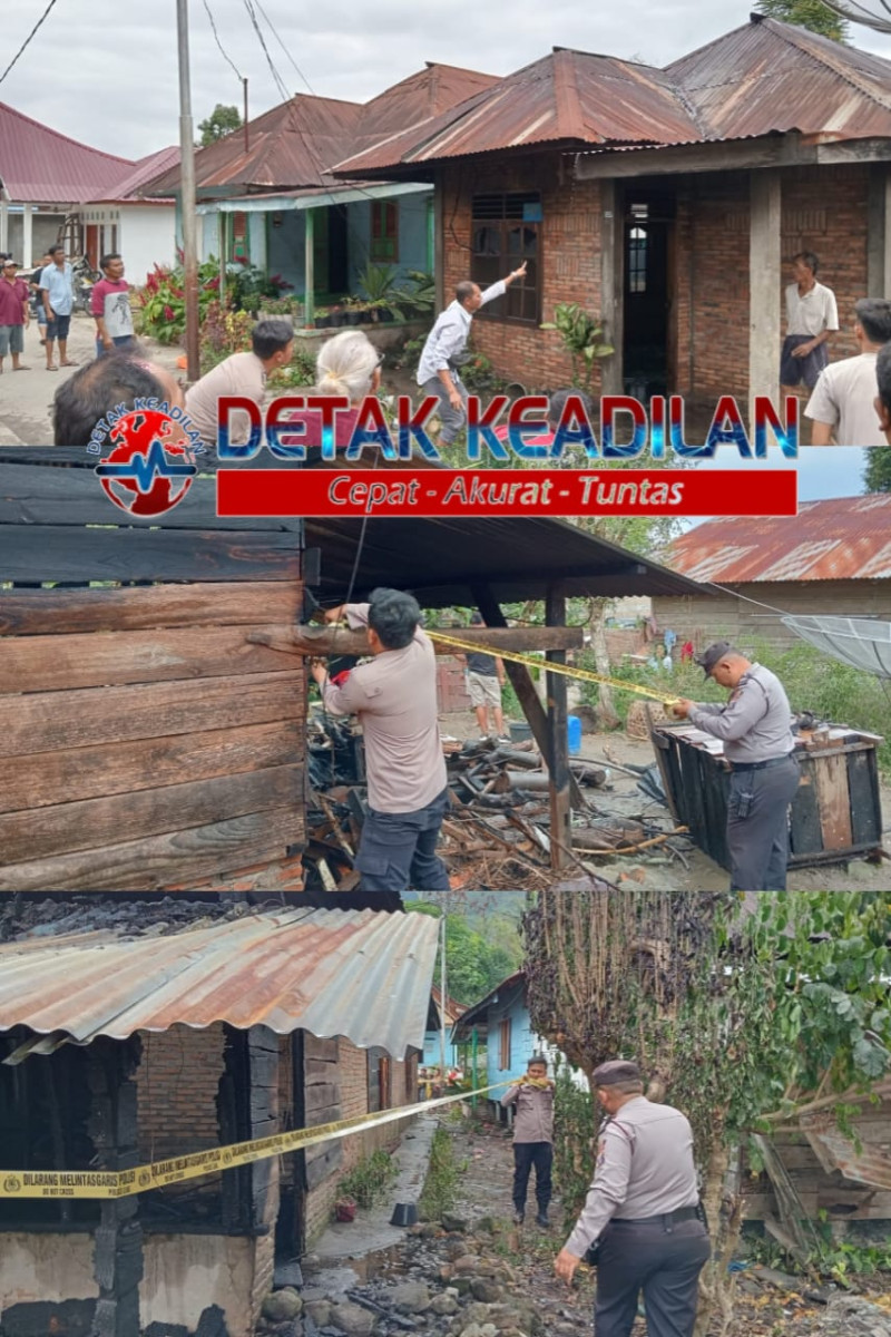 Menurut Kapolsek Simanindo, AKP Nandi Butar-butar, S.H., “Dugaan sementara, api berasal dari dapur karena pemilik rumah sedang menggunakan kompor kayu dan lupa memadamkan apinya. Dapur terbuat dari dinding dan atap papan, serta terdapat tumpukan kayu bakar yang mudah terbakar. Saat kebakaran, rumah dalam keadaan kosong.” Polsek Simanindo juga telah memasang Police Line di lokasi kejadian untuk mengamankan TKP.
