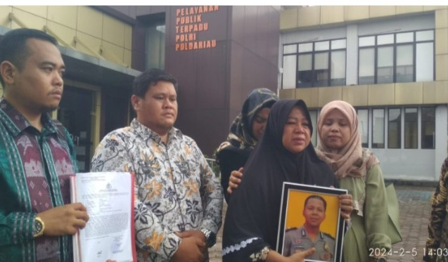 ” Karna sampai saat ini pihak keluarga belum mendapatkan informasi resmi penyebab kematian almarhum, baik itu dari pihak RS maupun dari pihak Polres Rohil. Bahkan sampai saat ini, pihak keluarga masih belum mengetahuinya. Sementara kecurigaan akan sebab kematian almarhum dengan tanda tanda luka dan lebam-lebam di sekujur tubuh itu diketahui pihak keluarga.” Ungkap Ramses Situmorang didampingi pihak keluarga kepada awak media usai membuat laporan di Polda Riau , Senin (5/02/2024) .