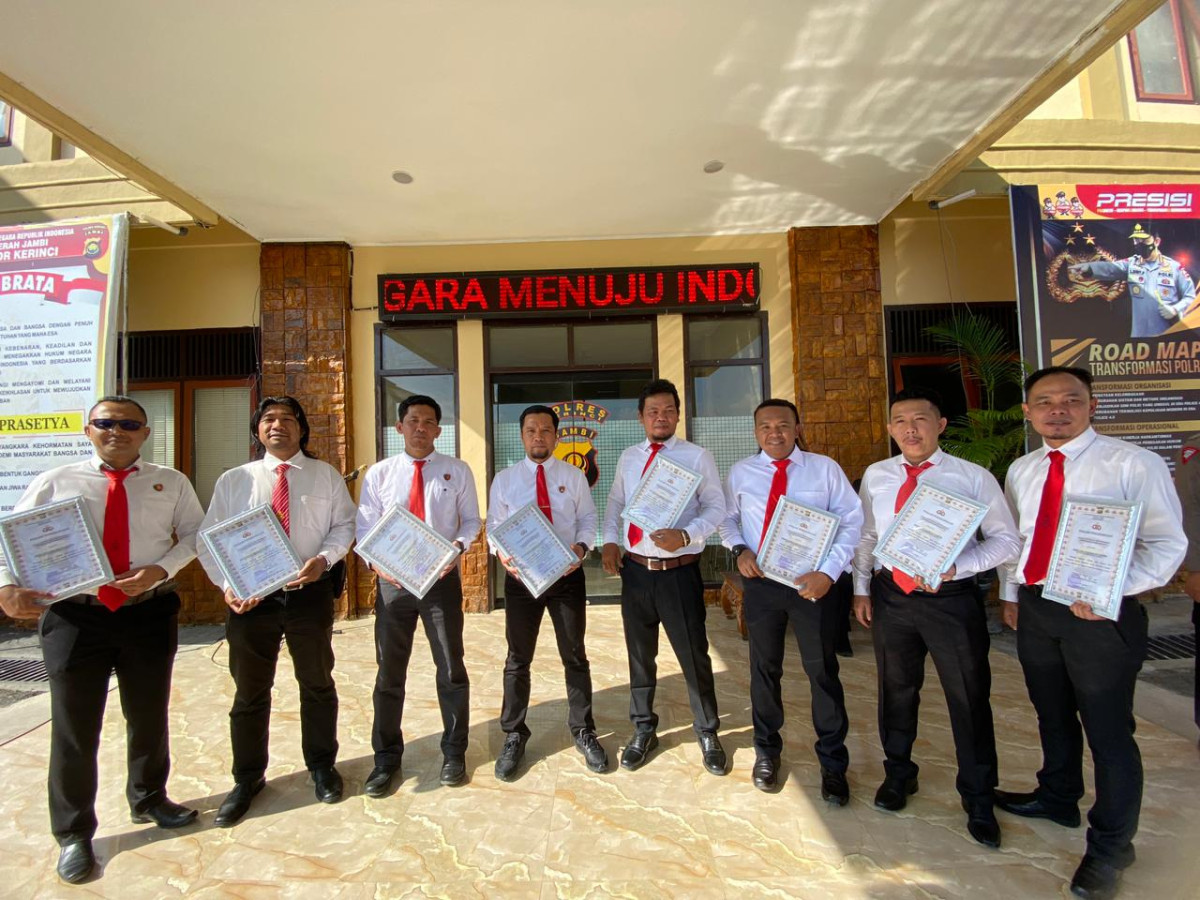 KERINCI – detakkeadilan.com 10 Anggota Satuan Reserse Kriminal (Sat Reskrim) Polres Kerinci meraih penghargaan yang luar biasa dalam pengungkapan Kasus Penjabretan yang terjadi di Jalan Lintas Desa Pulau Sangkar dan Desa Muan Kecamatan Bukit Kerman Kerinci dan Kasus Curanmor di wilayah hukum Polsek kerinci. Senin (18/03)