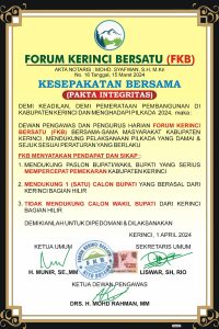 Kerinci-Jambi – detakkeadilan.com Menyongsong Pilkada Kerinci 2024 Zona Pertarungan di Negeri Sekepal Tanah Surga Dukungan Bacalon bupati kerinci DR.Mul Amri S.pd.M.pd Ph.D terus  mengalir kali ini  dari Forum Kerinci Bersatu (FKB)