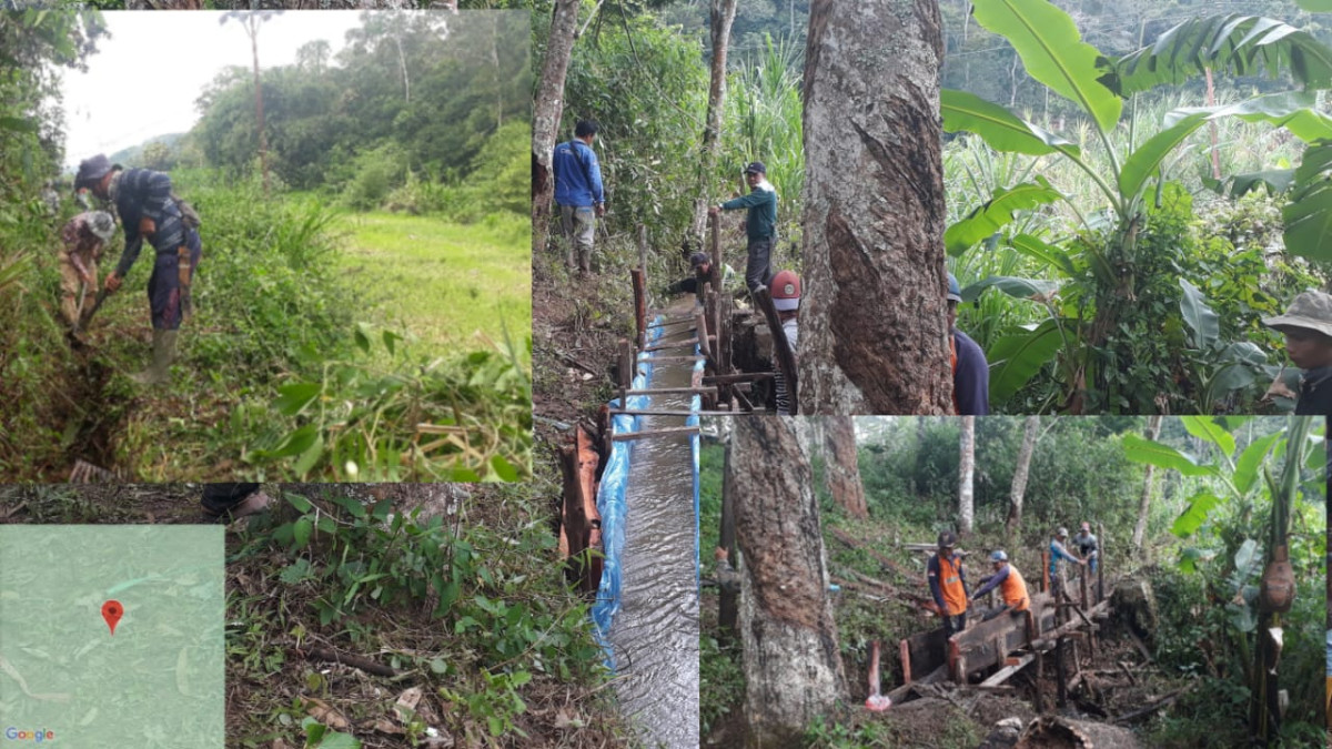 Secara Swadaya, kelompok Tani Sungai Merindu Pungut Hilir Goro Memperbaiki Talang Air Irigasi yang Rusak.