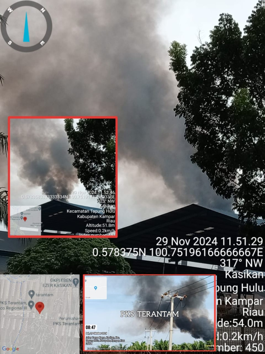 Kampar, detakkeadilan.com. Asap pekat dari cerobong Pabrik Kelapa Sawit (PKS) milik salah satu perusahaan BUMN yakni PTPN IV Palmco Regional III Distrik Barat PKS Terantam, Tapung hulu , kabupaten Kampar,Riau. 1/12/24.