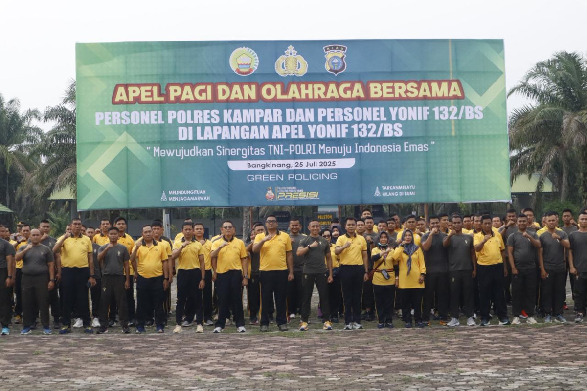 Kampar, DK ll. Solidaritas dan kebersamaan antara Tentara Nasional Indonesia (TNI) dan Kepolisian Republik Indonesia (Polri) di Kabupaten Kampar kembali terlihat jelas. Jumat (25/7/2025) pagi, Kapolres Kampar, AKBP Boby Putra Ramadhan, S dan Danyon 132/BS, Letkol Inf. Diyan Mantofani, bersama-sama memimpin apel pagi dan olahraga bersama di lapangan apel Yonif 132/BS. Kegiatan ini diikuti oleh seluruh personel Polres Kampar dan personel Yonif 132/BS, serta dihadiri oleh Wakapolres Kampar, Kompol Andi Cakra Putra, dan para Pejabat Utama (PJU) Polres Kampar, serta para perwira Yonif 132/BS.
