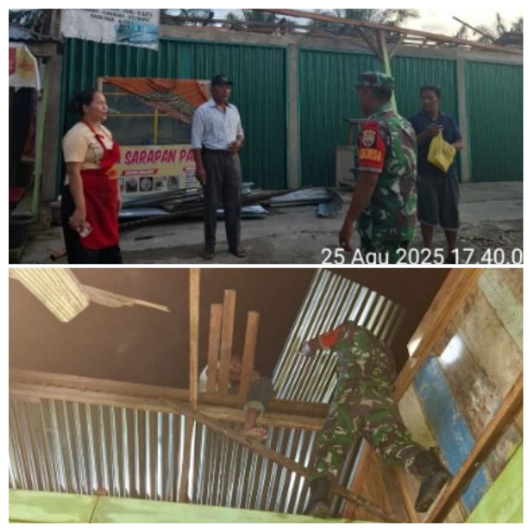 Komandan Koramil 08/Tdn Kapten Arh Aswin Sembiring mengarahkan Babinsa Koptu Rahmadi Sahputra untuk cepat tanggap memonitor langsung ke lokasi bencana alam serta membantu masyarakat yang terdampak bencana alam angin puting beliung.