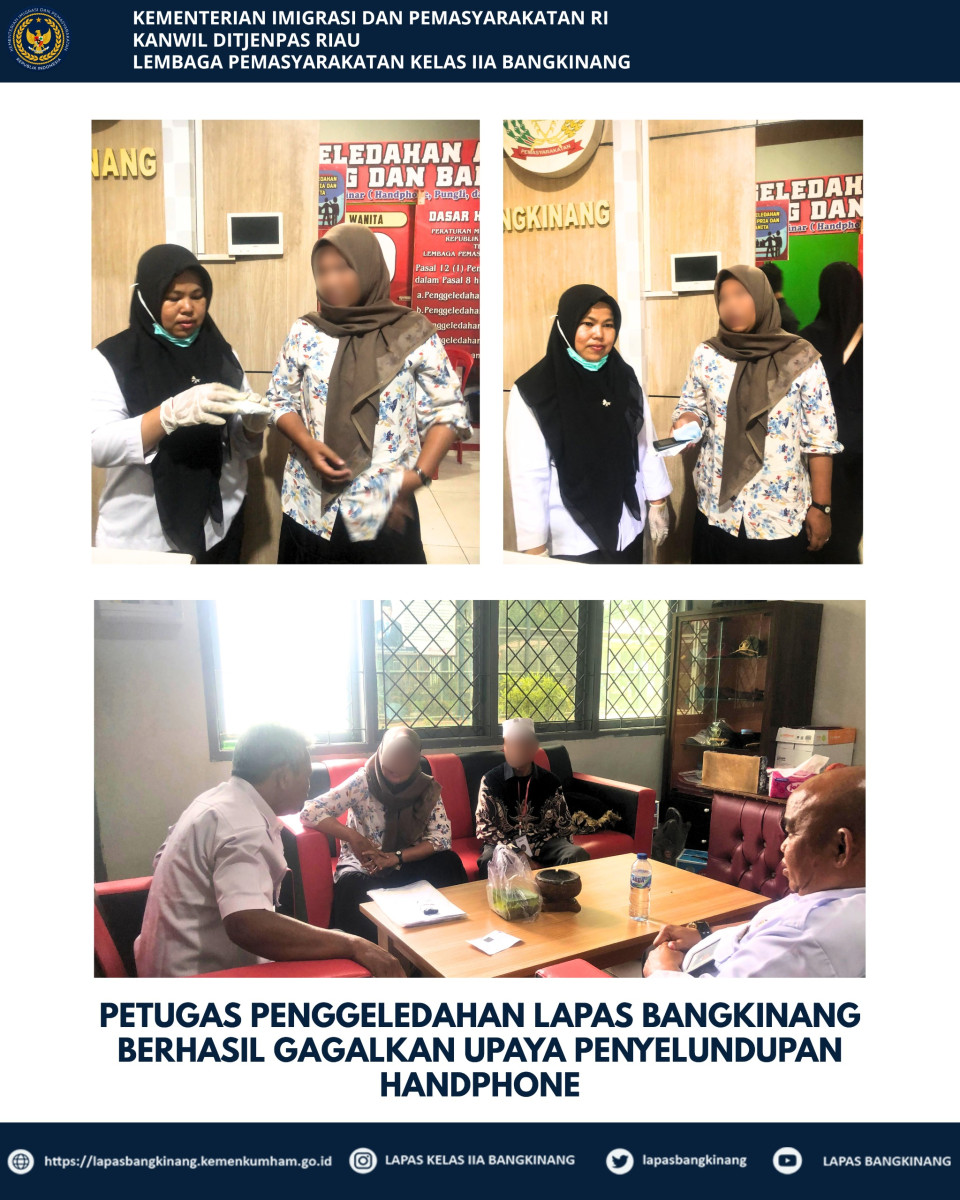 Pagi ini, Petugas Penggeledahan pengunjung Lapas Kelas IIA Bangkinang berhasil menggagalkan upaya penyelundupan Handphone dari seorang pengunjung yang akan diserahkan kepada salah seorang Warga Binaan yang ada di dalam Lapas IIA Bangkinang.