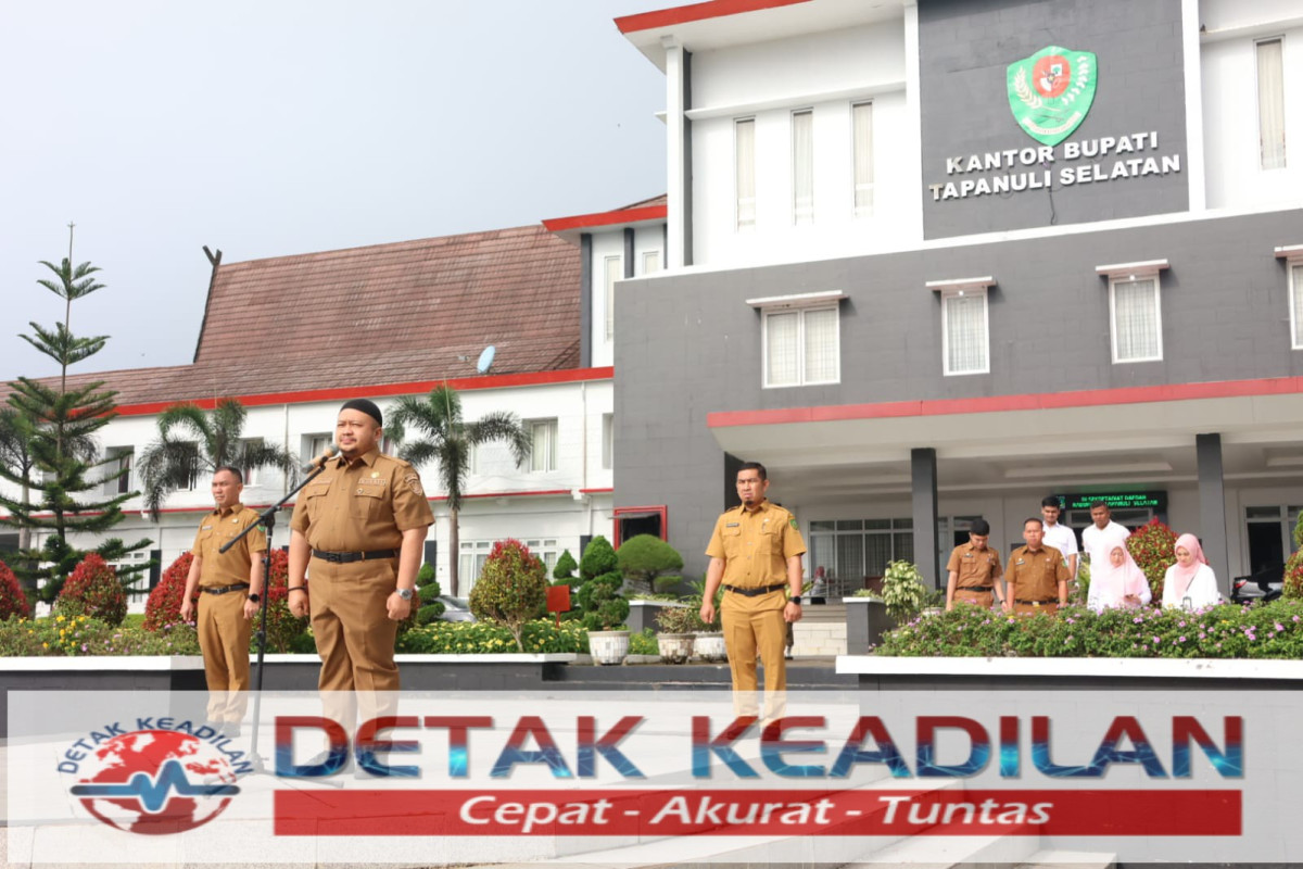 TAPANULI SELATAN || Detakkeadilan.com – Usai cuti bersama Idul Fitri 1 Syawal 1445 H/2024 M, Bupati Tapanuli Selatan (Tapsel) Dolly Pasaribu pimpin apel gabungan di lapangan Parade Pemerintahan Tapanuli Selatan, Jalan Prof Lafran Pane, Sipirok, Selasa (16/4) pagi.