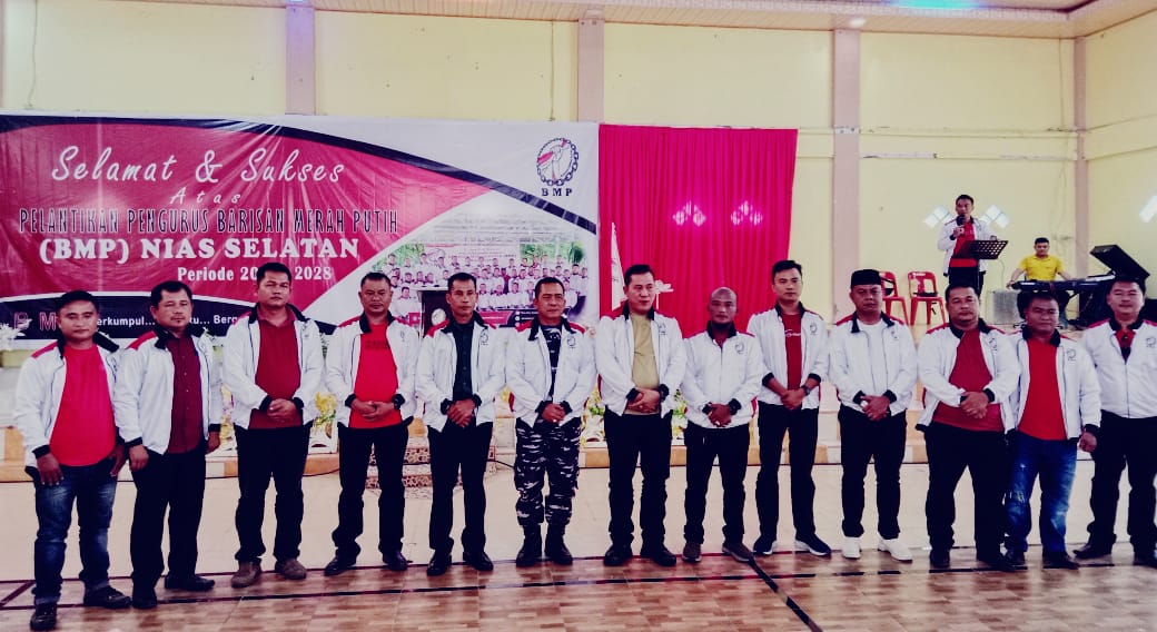 Nisel || DK – Pengurus Barisan Merah Putih (BMP) Kabupaten Nias Selatan (Nisel) Periode 2025-2028 dikukuhkan yang diselenggarakan di Aula Hall Defnas, Teluk Dalam, Sabtu (05/04/2025).
