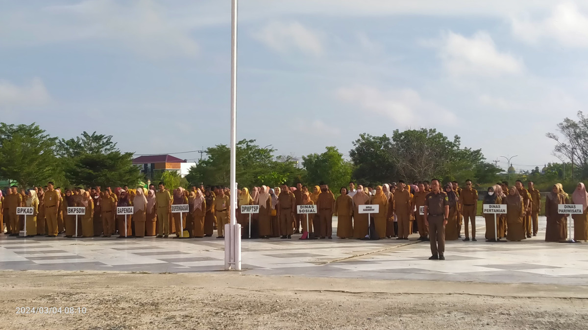 Rohil – detakkeadilan.com Pimpin apel bersama Minggu pertama bulan Maret Tahun 2024, Kepala Dinas Sosial Rokan Hilir (Rohil) Budi Syahril sebagai pembina upacara mengingatkan kepada Aparatur Sipil Negara (ASN) dilingkungan Pemerintah Kabupaten Rokan Hilir untuk melaksanakan apel bersama sebagai bentuk disiplin terendah yang harus dipatuhi.