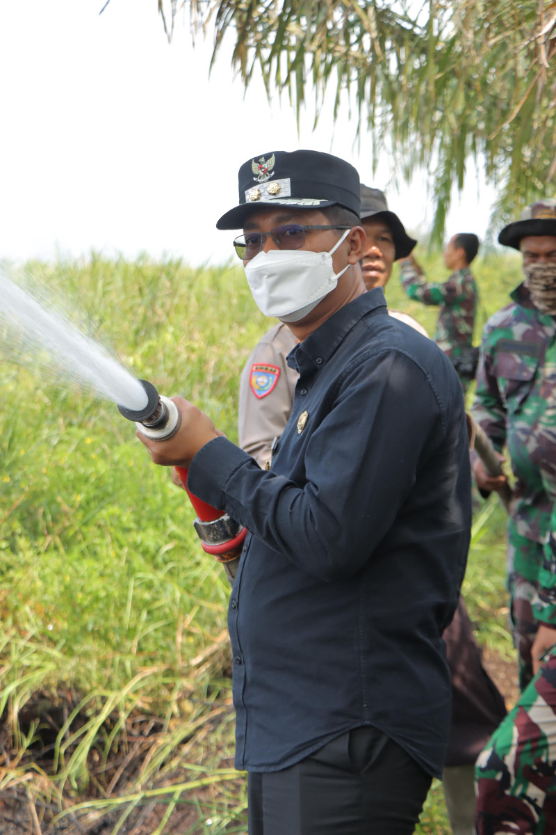 Bersama Wabup dan Dandim 0321, Kapolres Rohil Berjibaku Padamkan Karhutla di Bangko Permata