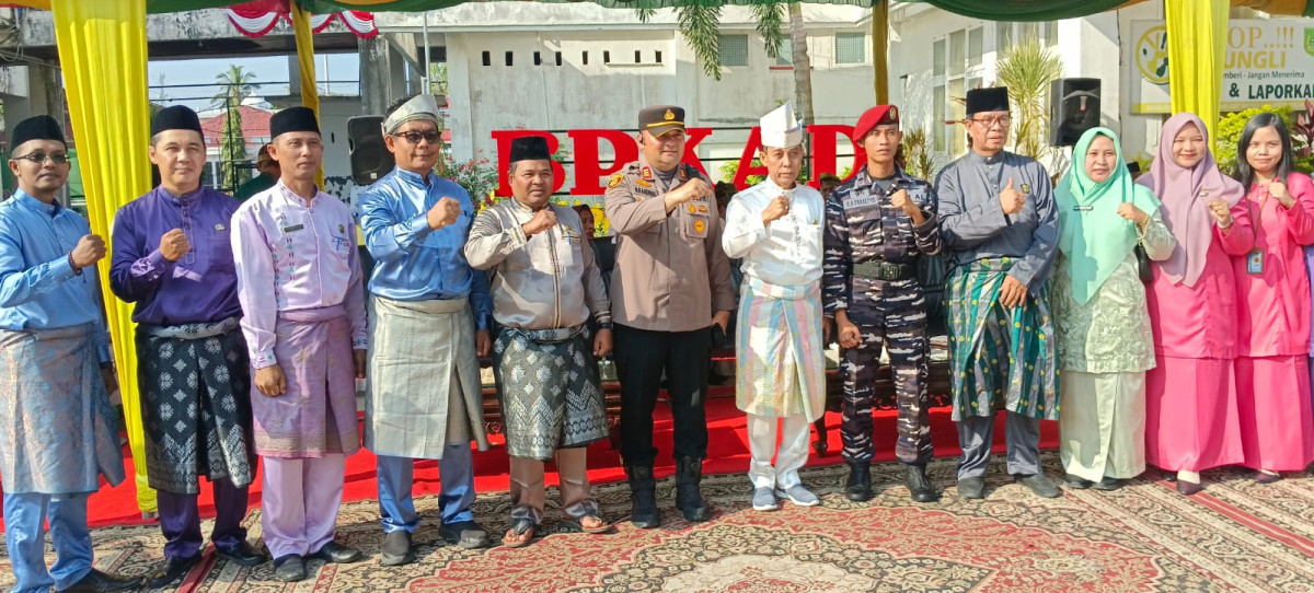 Rohil DK – Upacara Peringatan Hari Jadi ke-68 Provinsi Riau berlangsung di halaman Kantor Badan Pengelola Keuangan dan Aset Daerah (BPKAD) Kabupaten Rokan Hilir pada hari Sabtu (9/8/2025). Sekretaris Daerah Kabupaten Rokan Hilir, Fauzi Efrizal, tampil gagah mengenakan pakaian kebesaran adat Melayu lengkap dengan tanjak, memimpin jalannya upacara dengan nilai budaya dan identitas daerah.