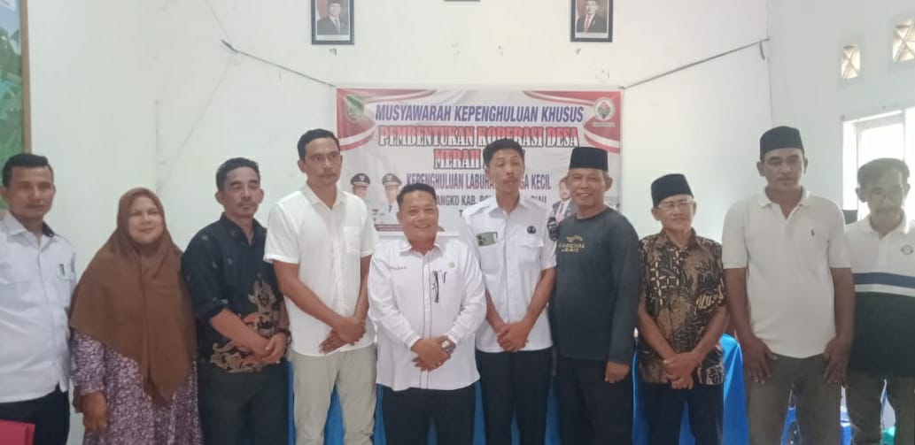 ROKAN HILIR DK – Penjabat (Pj) Penghulu Labuhan Tangga Kecil, Junaidi A.Ma, menggelar rapat Musyawarah Desa Khusus (Musdesus) pembentukan Koperasi Desa (Kopdes) merah putih bertempat diaula kantor Kepenghuluan Labuhan Tangga Kecil, Kecamatan Bangko, Kabupaten Rokan Hilir (Rohil) rabu (22/5/25).