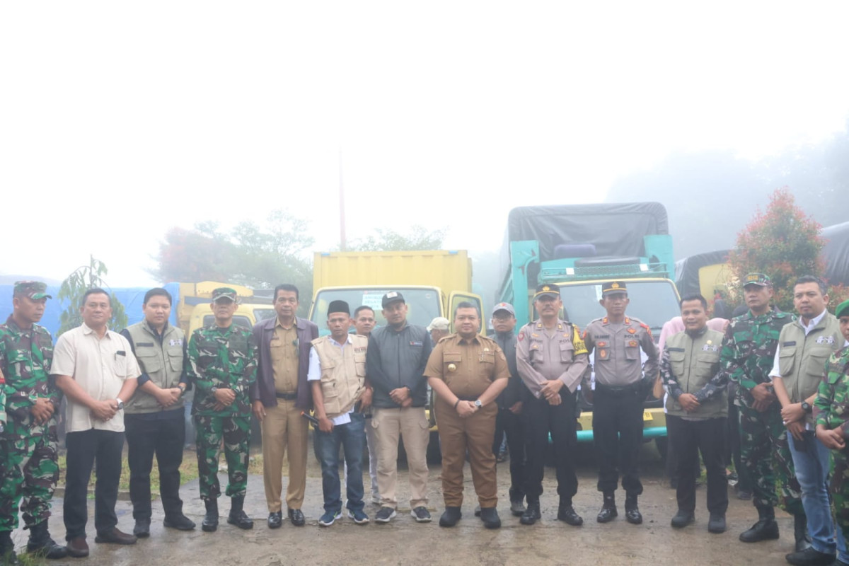 Pelepasan 40 truk angkut logistik di lepas Bupati di halaman Kantor KPU Tapsel, Jalan Lintas Sumatera, Desa Situmba, Kecamatan Sipirok, Senin (12/2).
