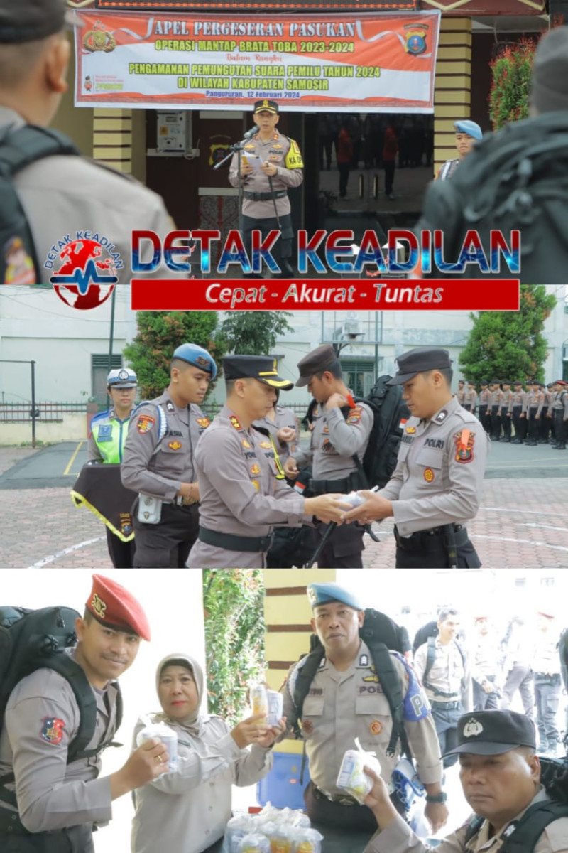 SAMOSIR – Detakkeadilan.com Tepat pada tanggal 12 Februari 2024, Lapangan Mako Polres Samosir menjadi lokasi pelaksanaan Apel Pergeseran Pasukan Operasi Mantap Brata Toba 2023 – 2024, yang dipimpin oleh Kapolres Samosir, AKBP Yogie Hardiman, S.H., S.I.K., M.H.