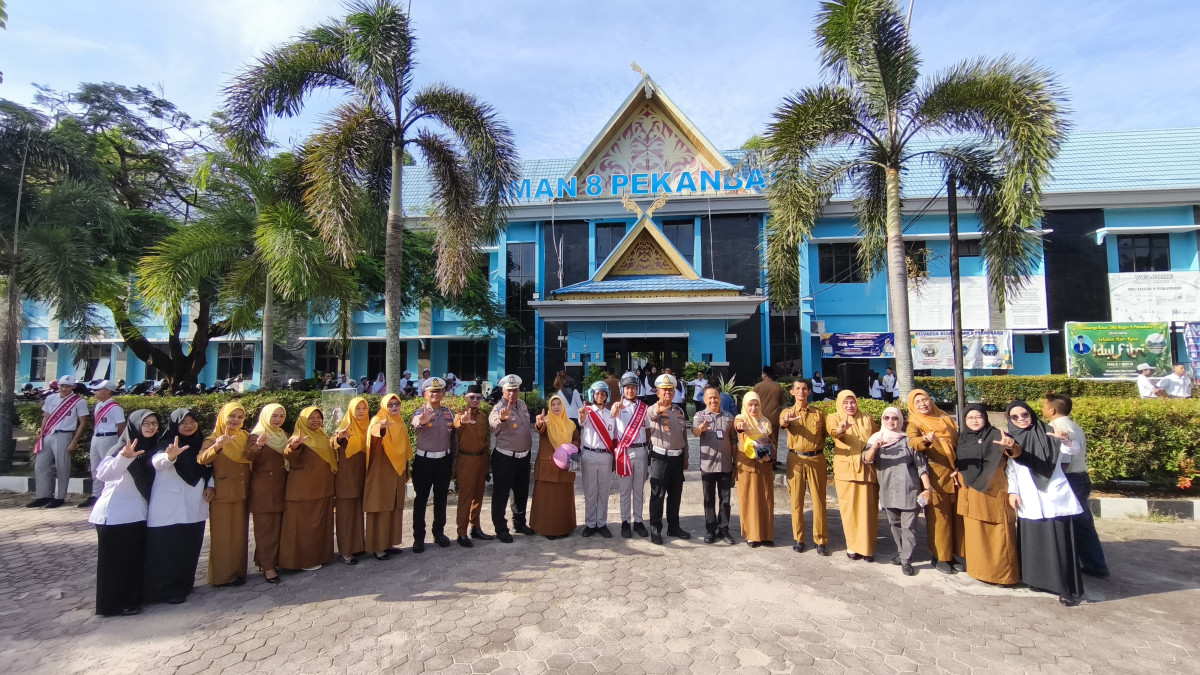 “Alhamdulillah, pagi ini sekitar pukul 07.00 WIB kami kembali melaksanakan rangkaian kegiatan Police Goes to School bersama para siswa-siswi SMAN 8 Pekanbaru. Dimulai dengan upacara, dilanjutkan edukasi Kamseltibcarlantas, serta pembagian helm, brosur, dan tumbler sebagai buah tangan kepada para pelajar,” jelas Kombes Pol Taufiq Lukman.