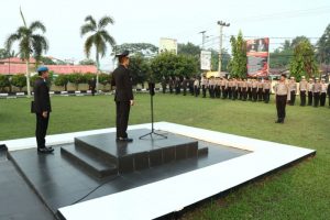Peserta upacara terdiri dari Pejabat Utama Polres Kampar, Para Perwira, Bintara dan ASN Polres Kampar.