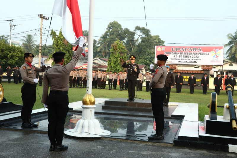 Sementara itu Kapolres Kampar selaku Inspektur Upacara, membacakan Amanat Menteri Pemuda dan Olahraga RI pada Upacara Memperingati Hari Sumpah Pemuda ke-95 tahun 2023 dengan petikan :