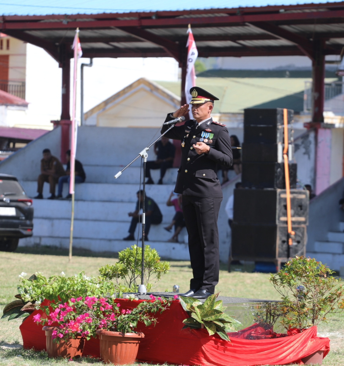 Kapolres Tapanuli Utara yang selaku Irup membacakan amanat Kapolda Sumatera Utara dalam rangka memperingati HUT Bhayangkara ke-79 tahun ini dengan mengusung tema “Polri untuk Masyarakat”, dan menegaskan peran dan komitmen Polri sebagai pelindung, pengayom, dan pelayan masyarakat yang humanis, responsif, serta adaptif terhadap dinamika sosial yang terus berkembang.