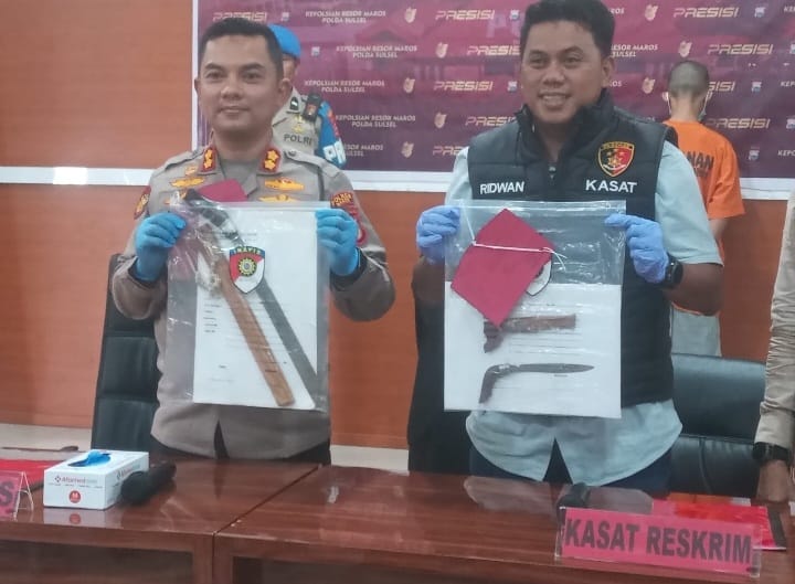 Kasat Reskrim Polres Maros, Iptu Muh. Ridwan, S.H., M.H., menambahkan pihaknya juga mengamankan barang bukti berupa satu bilah badik milik IL dan satu bilah parang milik SG yang digunakan dalam aksi brutal tersebut.