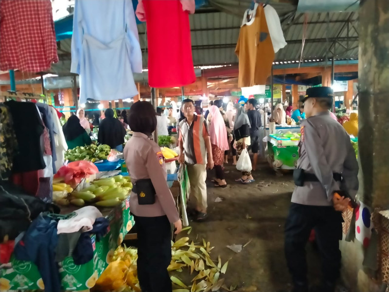 Aiptu Erizal, S.H, Aiptu Sukardi, S.I.P, Aiptu Sri Maryati, S.E, menyambang pedagang dan pengunjung pasar Pasar 50 Jl. Sultan Syarif Kasim, Pelabuhan Mawar