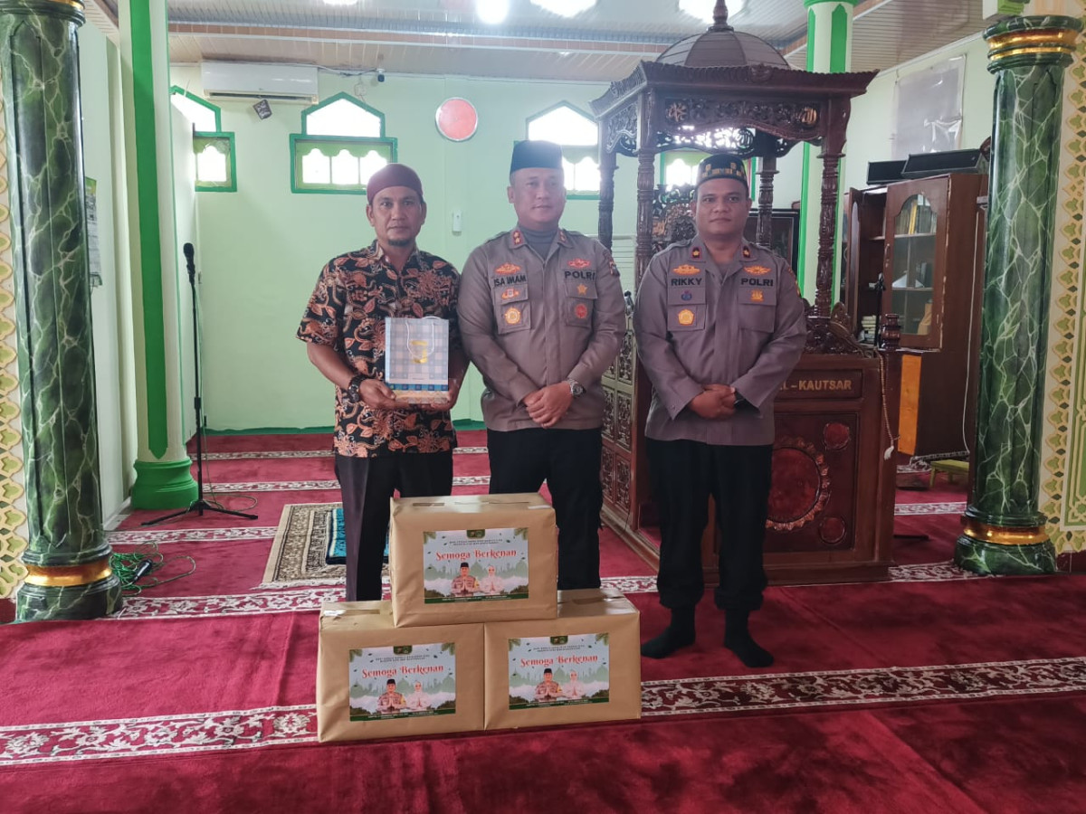 Disambut Seketaris Pengurus Masjid Al-Kautsar Suryadi dan Ketua Pengurus Masjid Al- Ikhsan Drs M. Zen MS.i, Kepada keduanya Kapolres Rohil menyerahkan secara simbolis berupa Alquran 20 Pcs, Sarung 10 Pcs, Rekal 20 Pcs, Mukenah 20 Pcs dan ada juga Dana Operasional.