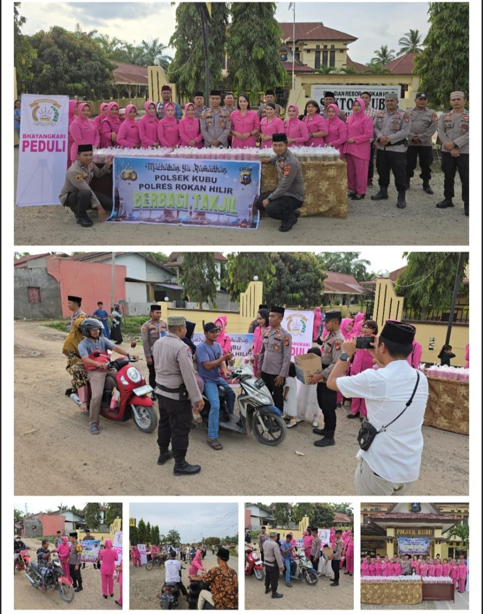 Ramadhan 1446 H, Polsek Kubu Polres Rohil dan Bhayangkari Bagikan Takjil kepada Masyarakat