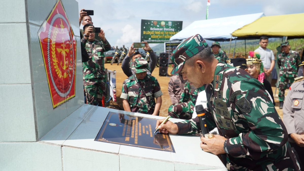 “Selain pembukaan jalan, Satgas juga telah merampungkan Pembuatan Sumur Bor di tiga Titik, Perehapan MCK Masjid Darul Salam, pengecatan masjid, serta pembuatan tugu prasasti TMMD,” kata Danrem.