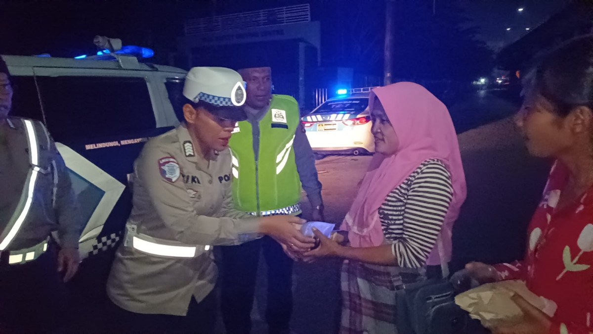 Tampak TIM Sahur On the road Ditlantas Polda Riau membagikan paket nasi bungkus untuk sahur, sambutan senyuman hangat masyarakat tampak menyambut tim Sahur On the road Ditlantas Polda Riau.