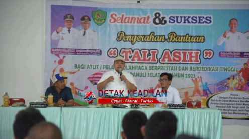 TAPANULI SELATAN – Detakkeadilan.com ||Bupati Tapanuli Selatan (Tapsel) Dolly Pasaribu memberikan penghargaan berupa tali asih kepada atlit dan pelatih olahraga berprestasi yang berdedikasi tinggi, sekaligus menyerahkan bantuan peralatan dan perlengkapan kepada pengurus cabang olahraga Kabupaten Tapanuli Selatan.