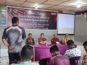 TARUTUNG || detakkeadilan.com Kepala Rumah Tahanan Negara Kelas IIB Tarutung Kanwil Kemenkumham Sumut Ismet Sitorus beserta jajaran sambut baik kunjungan kerja Kepala Pusat Strategi Kebijakan Tata Kelola Hukum dan HAM Dr. Syarifuddin, S.T., M.H. beserta tim analis kebijakan badan strategi kebijakan Hukum dan HAM, Kamis (30/05).