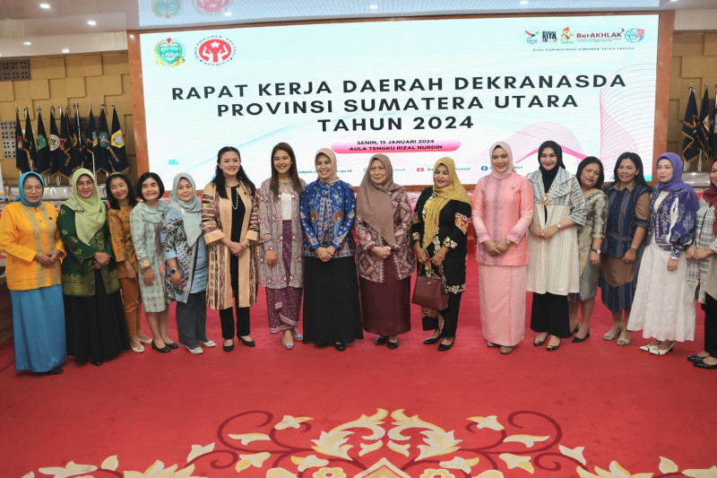 “Di Tahun 2024 ini, Sumut dan Aceh menjadi tuan rumah PON, dari acara tersebut nantinya kita akan kedatangan tamu-tamu dari seluruh Indonesia ke Sumatera Utara, saya kira kegiatan tersebut dapat menjadi momentum bagi kita, agar Produk UMKM kita dikenal secara luas, untuk itu saya meminta agar para Ketua Dekranasda yang berhadir di rapat ini, untuk mendorong pelaku UMKM di daerahnya masing-masing, agar nantinya mempunyai produk unggulan, yang dapat dikenalkan kepada masyarakat luas,” ujar Dessy.